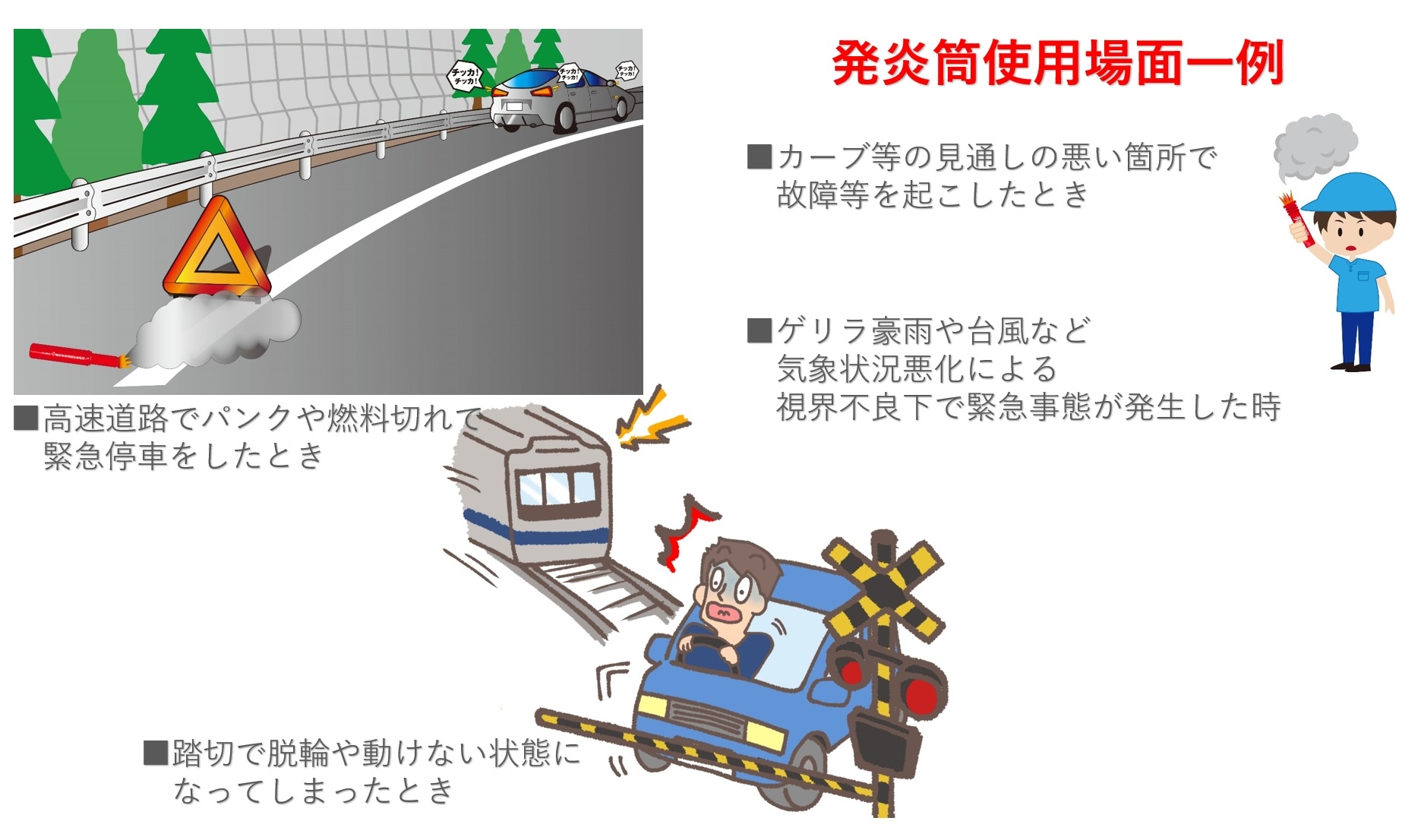 発炎筒は、トンネル内や可燃物の近くでは使用しないでください。