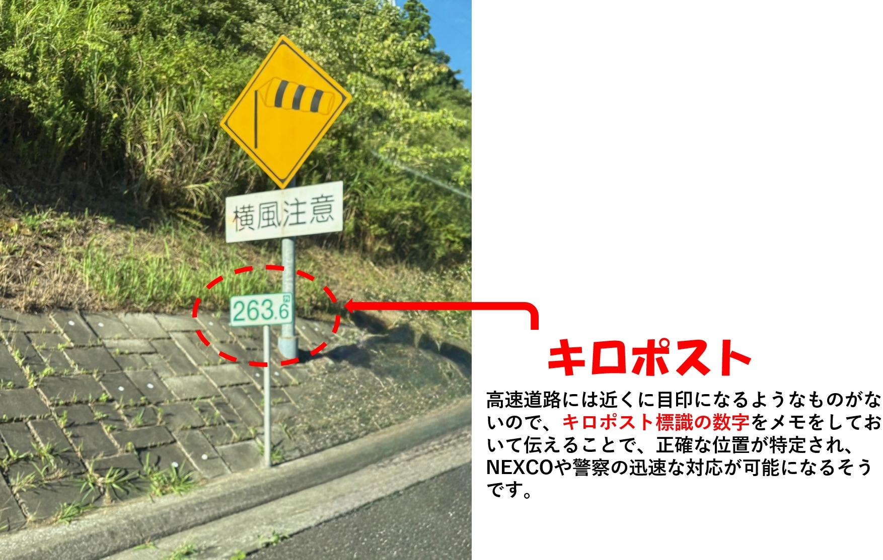 携帯電話の場合にはキロポストの数字を伝えることで場所が特定されます。