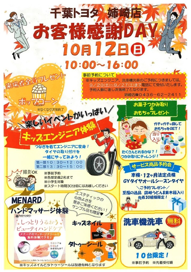 さて、千葉トヨタ 姉崎店では数年ぶりにお客様感謝祭を10月12日(日)に行います!