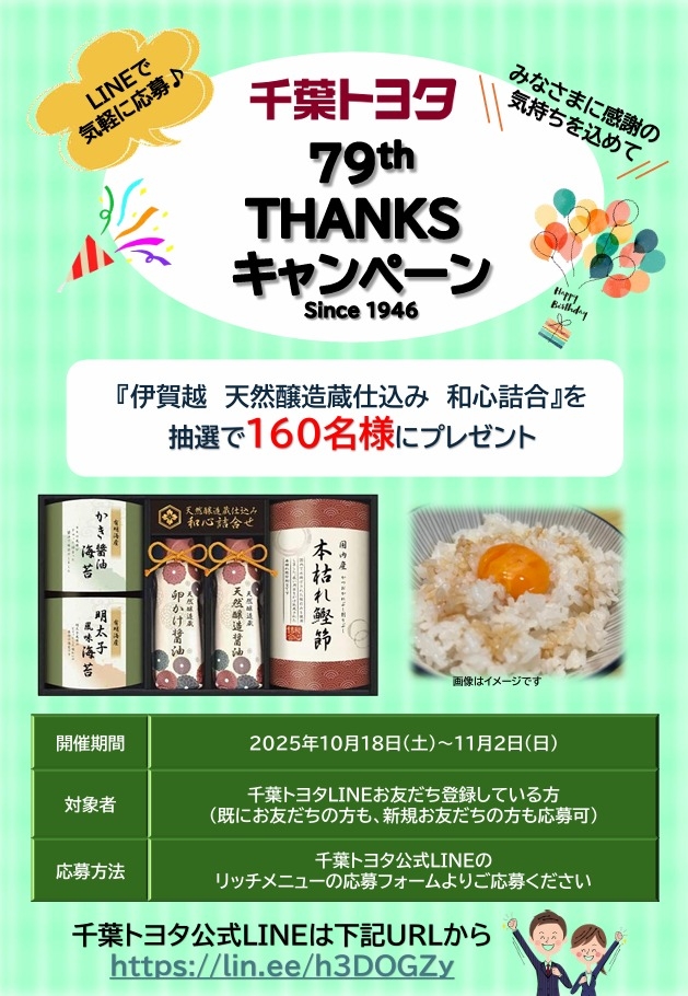 千葉トヨタLINEから応募、抽選でプレゼントが当たるキャンペーン🎁