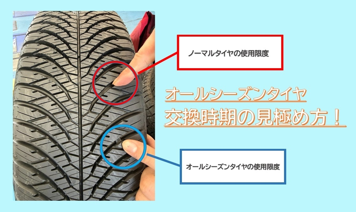 オールシーズンタイヤ … 使用限度がプラットホームの露出