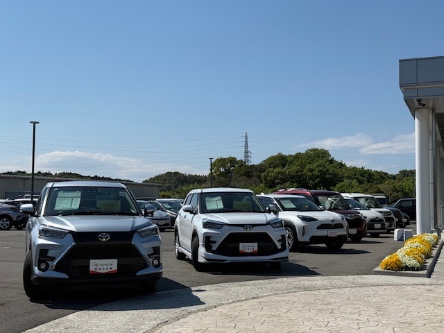 当店では広~い敷地に、試乗車や中古車の展示車を多数ご用意しております。