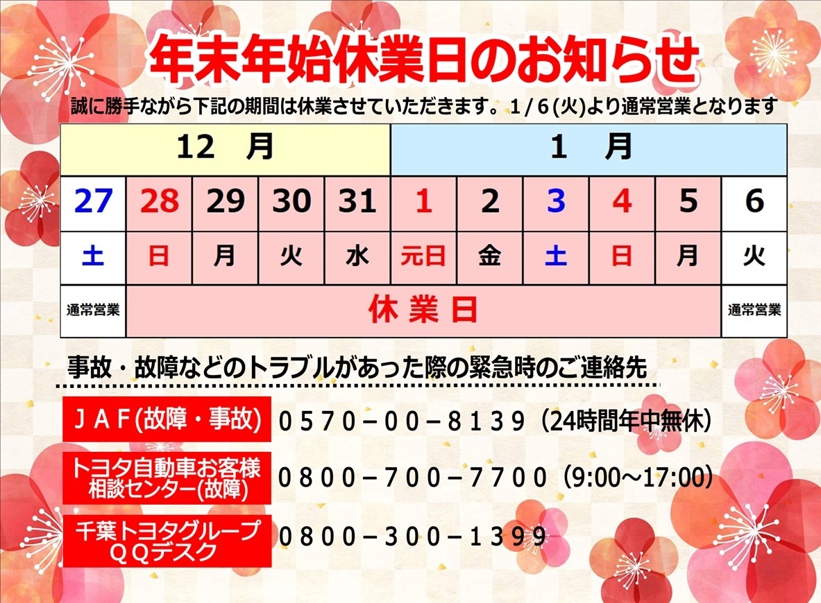 年末年始休業日のお知らせです