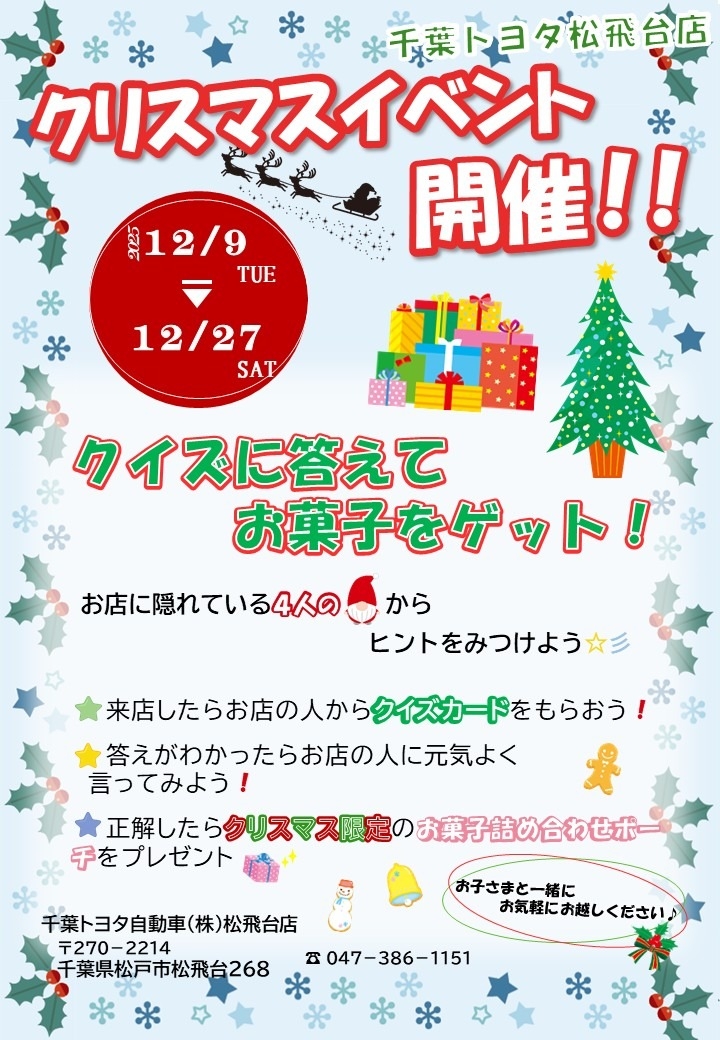 松飛台店では12月中お子さま向けの 🎊クリスマスイベント 🎊を絶賛開催中です!!✨