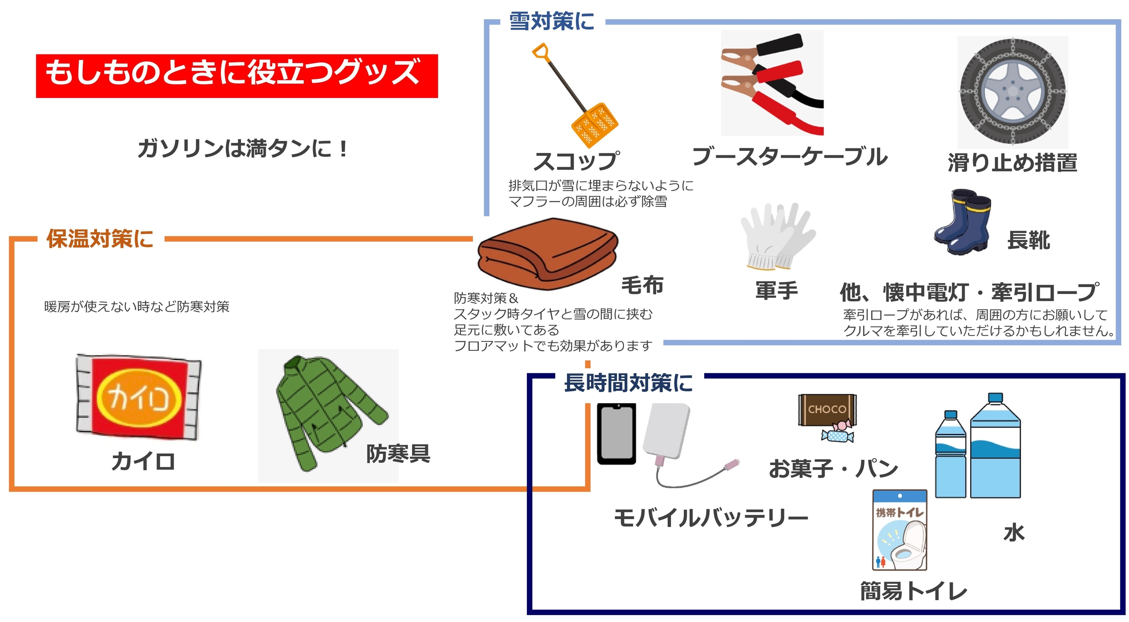 まず、クルマに積んでおくと安心なものをまとめてみました。