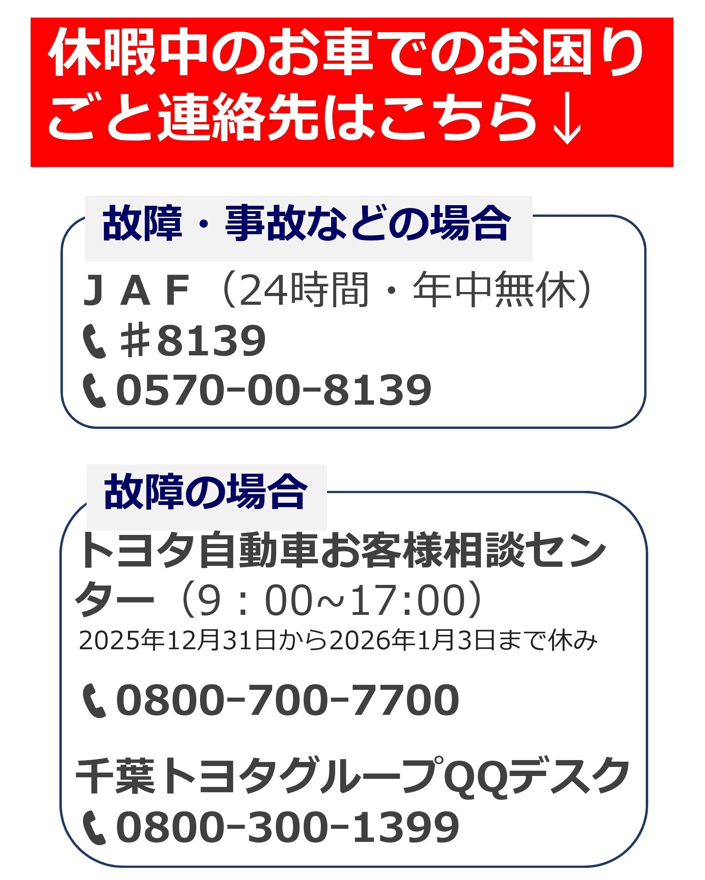 JAFのオススメ・冬の運転について&年末のご挨拶 千葉トヨタ自動車㈱ 大多喜店