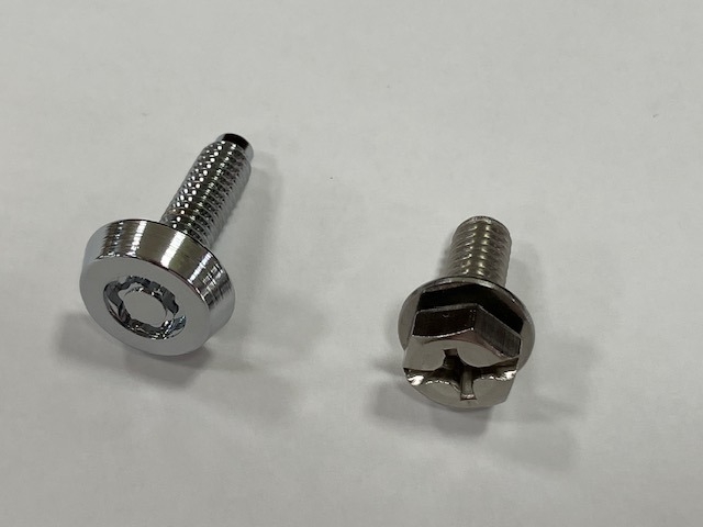 ボルト頭部は特殊形状で専用工具(左)がないと脱着できないようになってます