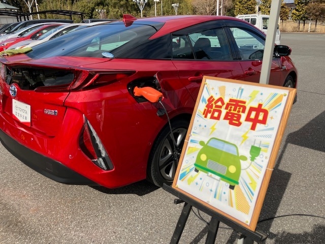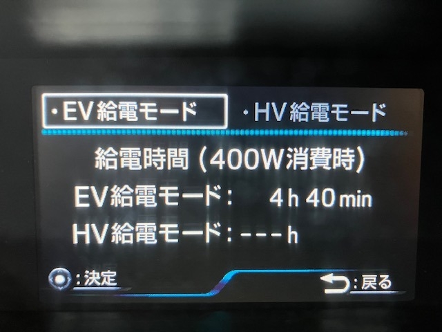 まずは、今回使用するプリウスPHEVを安全な場所に停めてエンジンは停止、AC外部給電モ-ドのEVモ-ド※に設定します