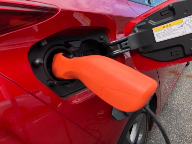 普通充電インレットに専用変換アダプタ-(ヴィークルパワ-コネクタ-)を取り付けて・・・