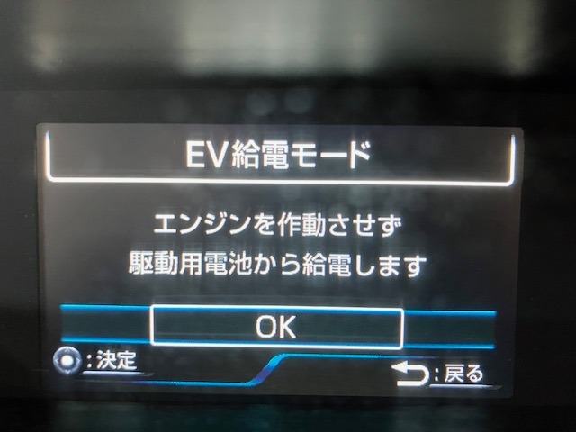 ※環境に配慮して駆動用電池に蓄えられている電力のみを使用してAC(交流)外部電源供給を行います。電源供給可能な駆動用電池の残量を下回ると、給電を終了します。また、電源供給中はエンジンアイドリングは作動しませんので排気ガス放出はありません。