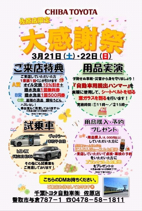 佐原店限定『大感謝祭』開催!3/21(土)・3/22(日)