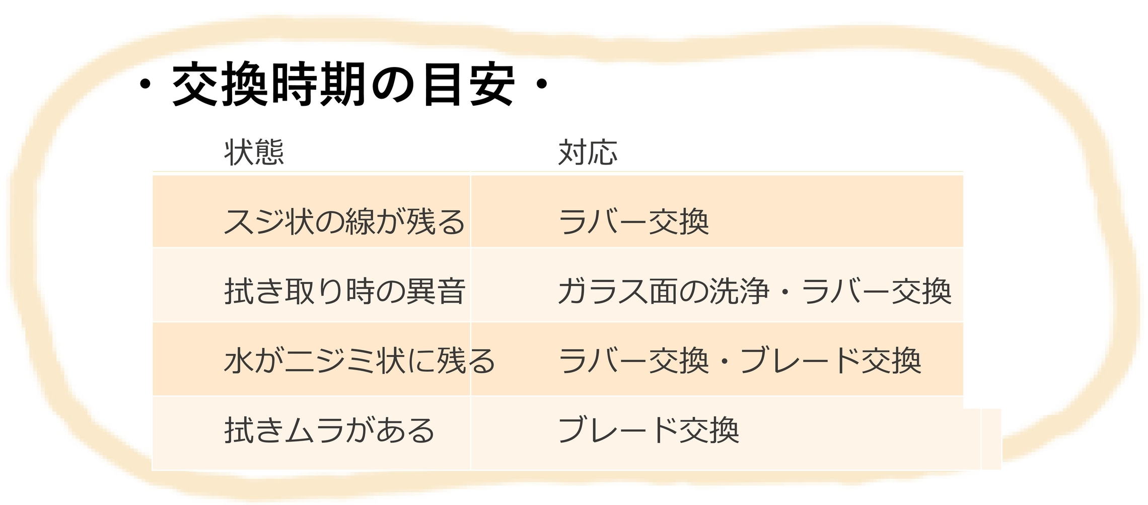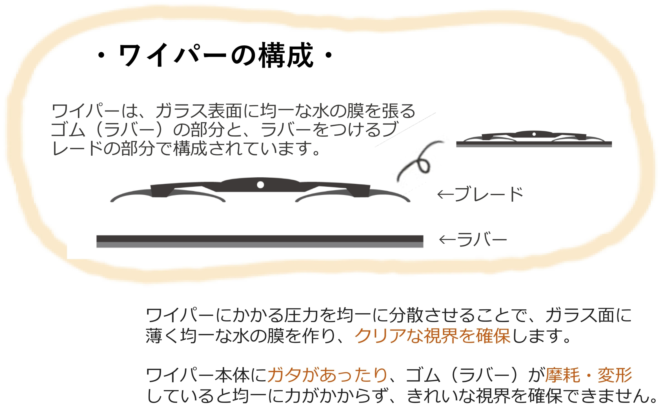 日頃から拭き取り状態を確認することで、クリアな視界で運転を楽しんでください。