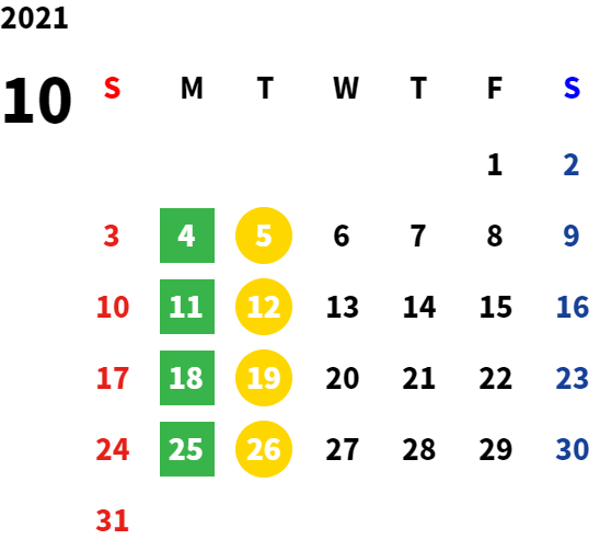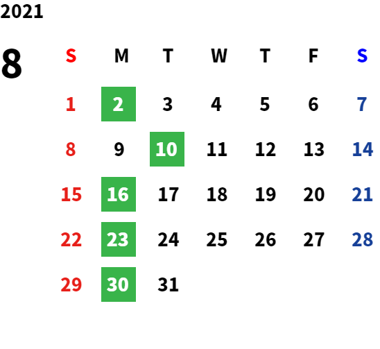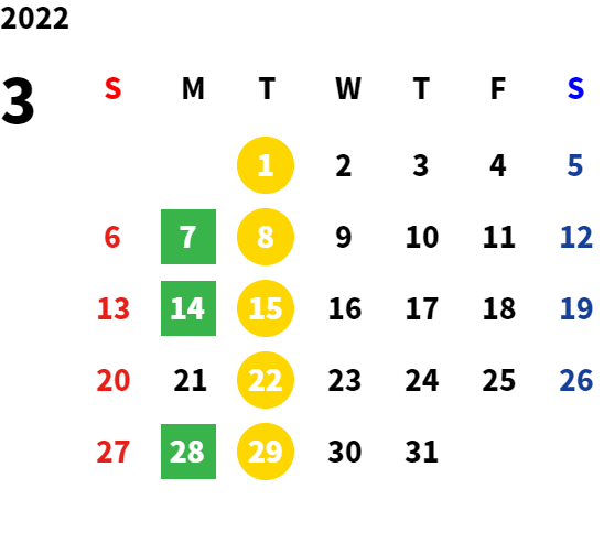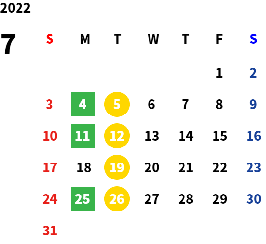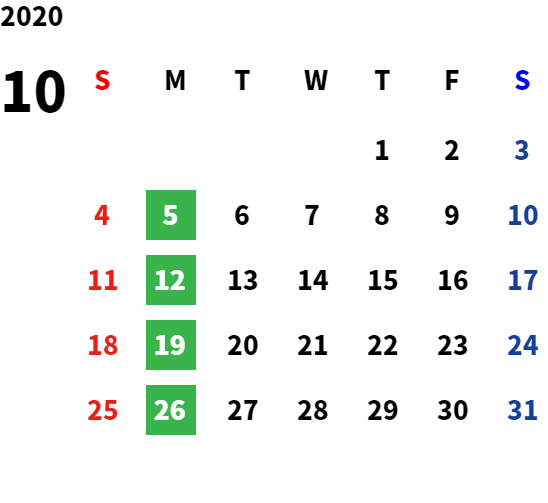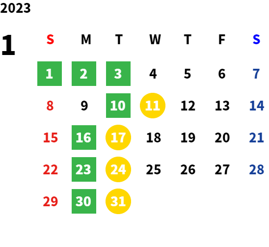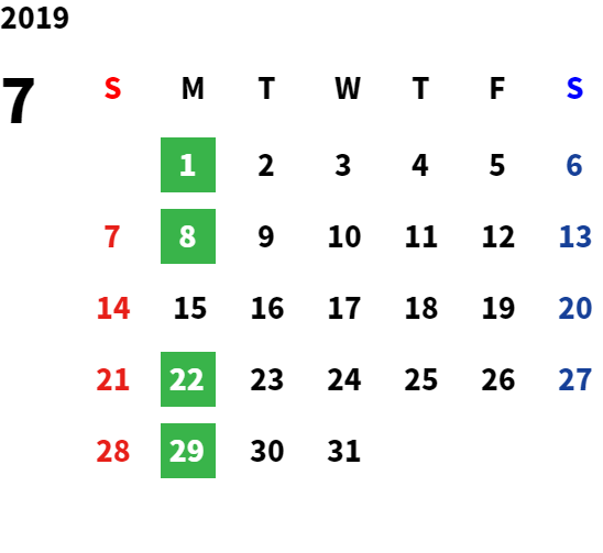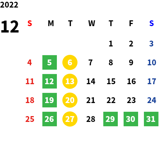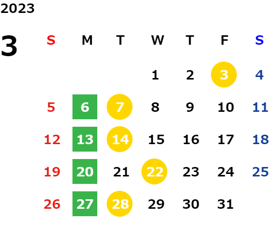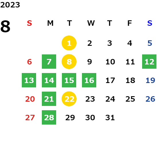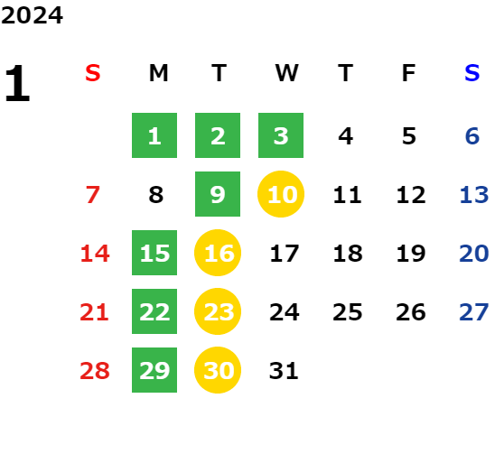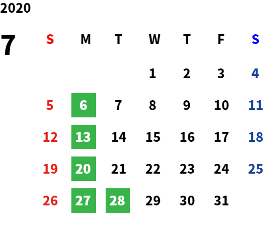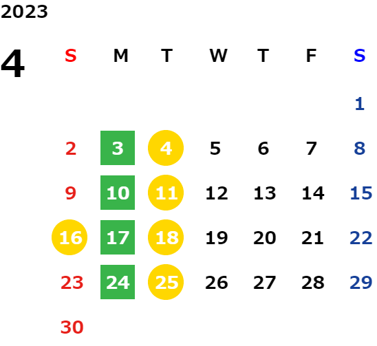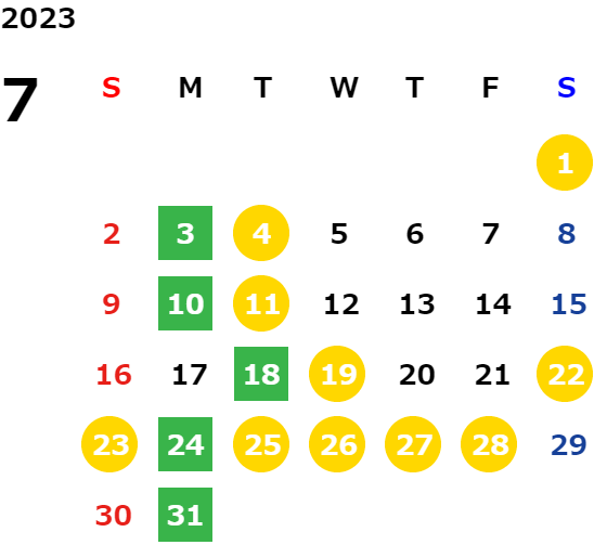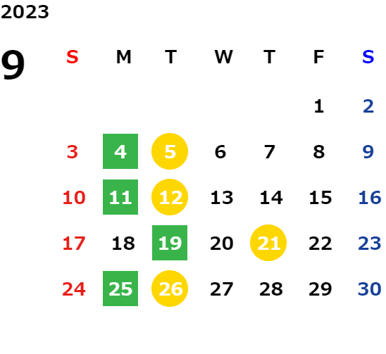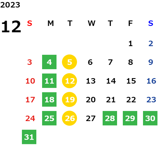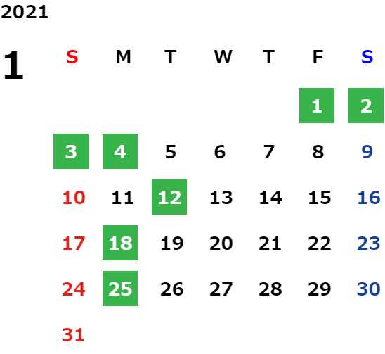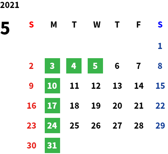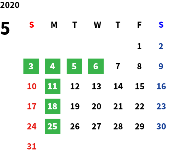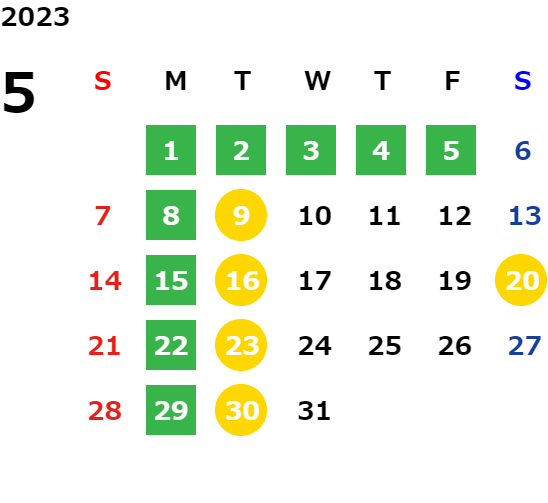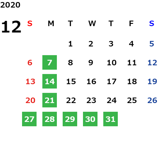 営業日カレンダー