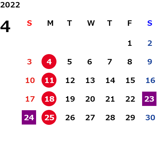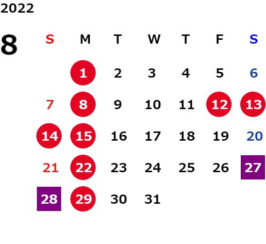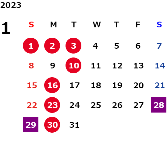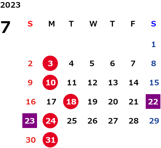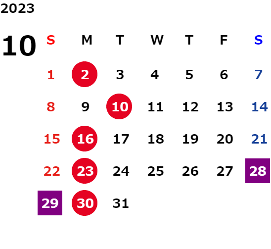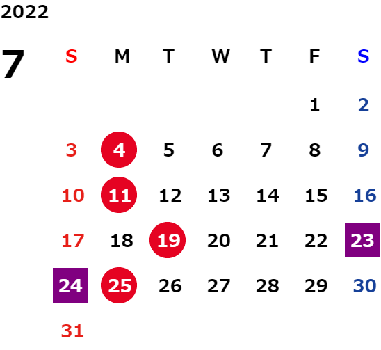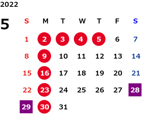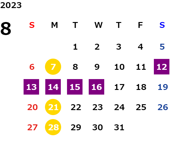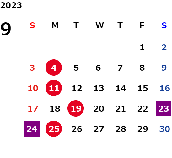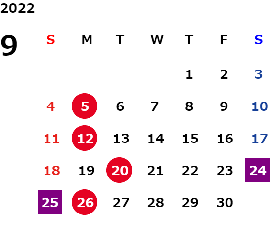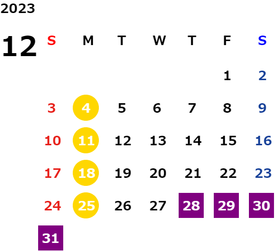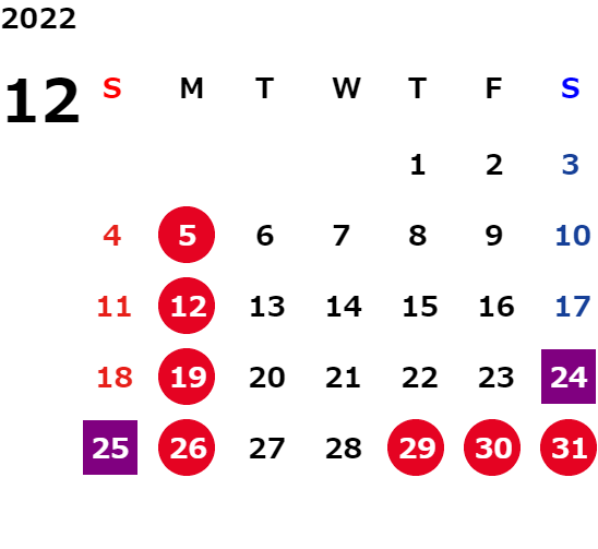 営業日カレンダー